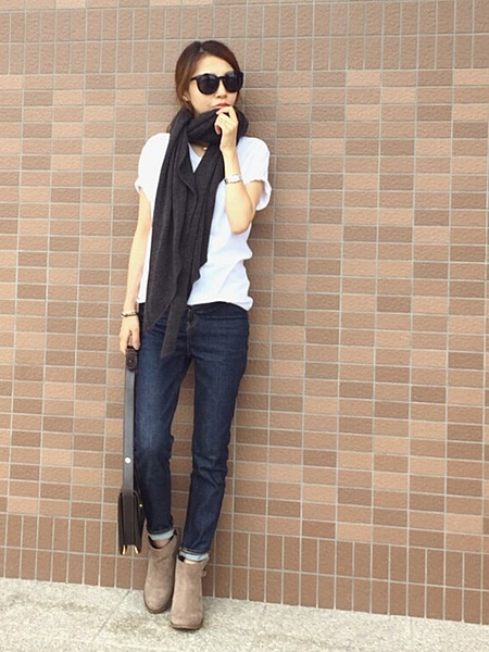 色が薄いから、濃い色のスヌードをプラスして