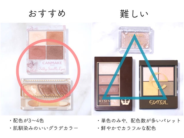 アイシャドウは以下のようなものをチョイスすると失敗が少ないのでオススメです。