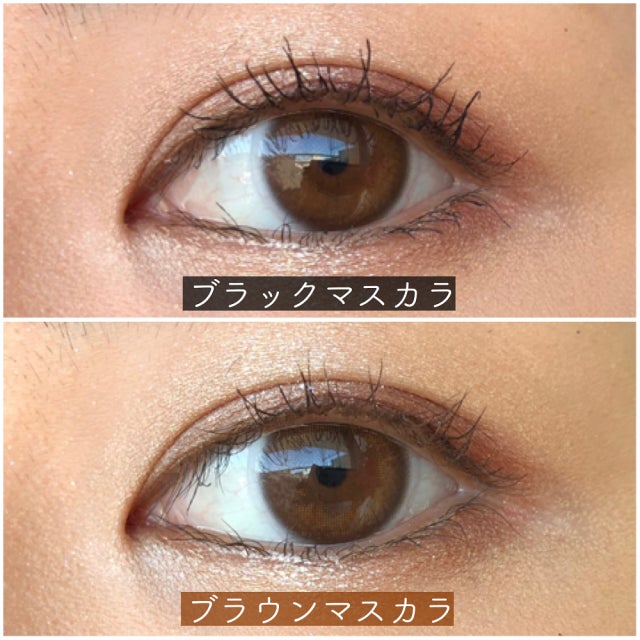 マスカラの色を変えただけでここまで印象が変わります。ブラックよりもナチュラルに、優しい仕上がりになりました。