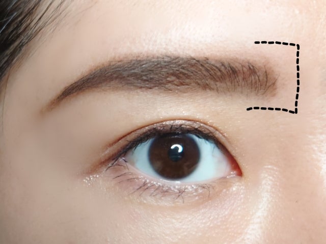先ほどのアンダーラインと違って、眉の上のラインにくっきりと線が残り過ぎてしまうのはNG。ここを強く書き過ぎると、「メイク感」が出てしまい、ナチュラルに見えません。