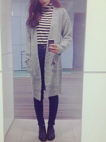 今年はグレーに限らずロングカーディガンが大人気。