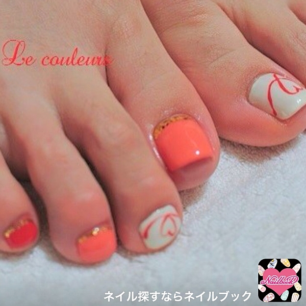 ぱきっとしたオレンジが夏らしい!シンプルだけど存在感のあるデザインがフットネイルにはぴったりですね♡