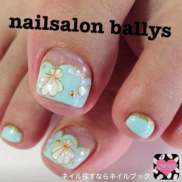 爽やかな白を基調としたフットネイルが2015年は旬な予感!