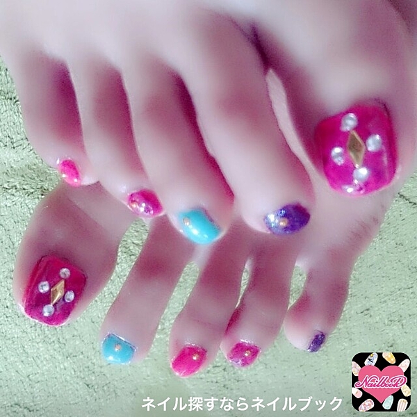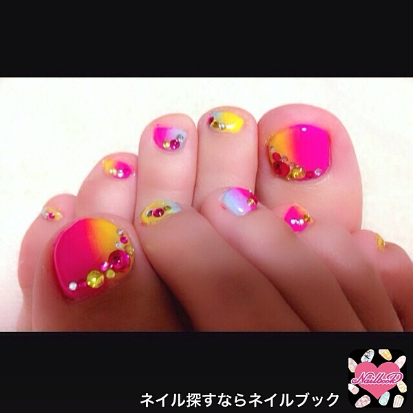 ビビットなぱきっとしたカラーが夏のフットネイルには最適◎