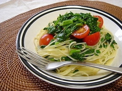 モロヘイヤとトマトの冷製パスタ。