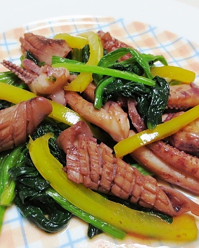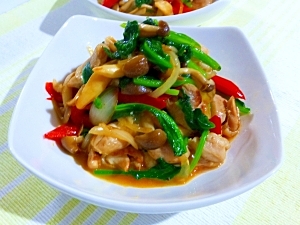 楽天レシピ:「鶏肉とほうれん草とパプリカの炒め物 」より