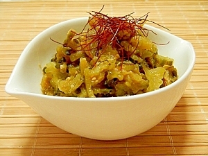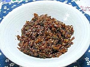 甘辛い味噌に豆板醤がピリリと効いています。日持ちのする常備菜です。