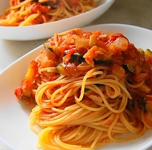 ツナとズッキーニのトマトソースパスタ