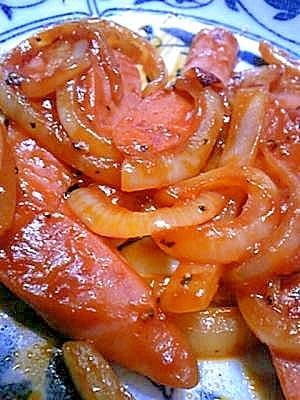 楽天レシピ:「ウインナーと玉ねぎのケチャップ炒め 」より