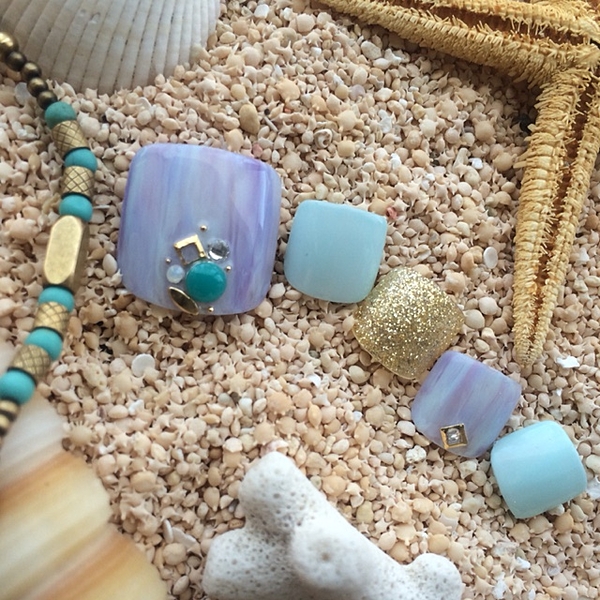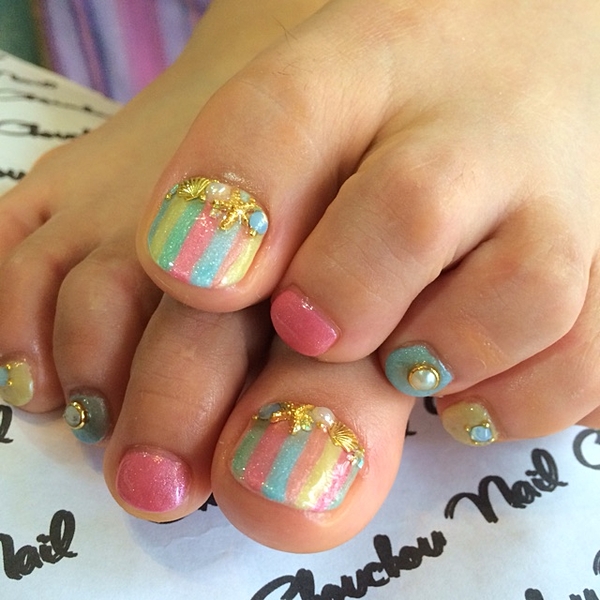 あわいグラデーションのカラーがとってもラブリーなビーチフットネイル☆