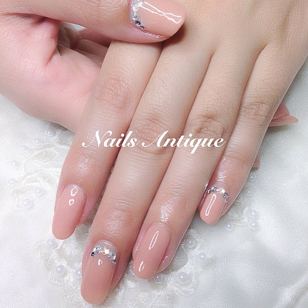 シンプルネイルの根元に1つのせるだけで、上品な華やかさに♪