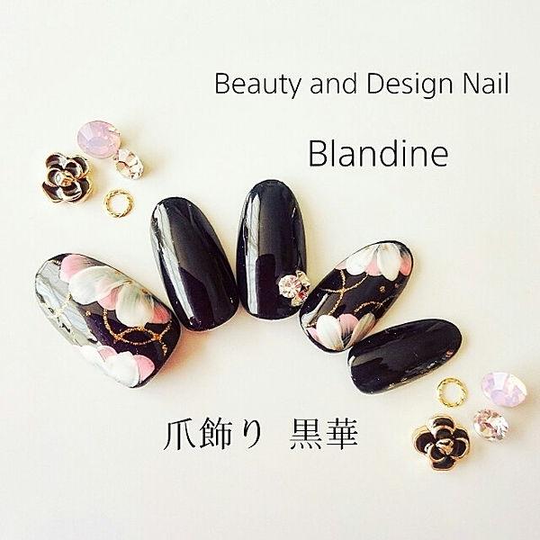黒をベースにお花とゴールドラメがいっぱい!