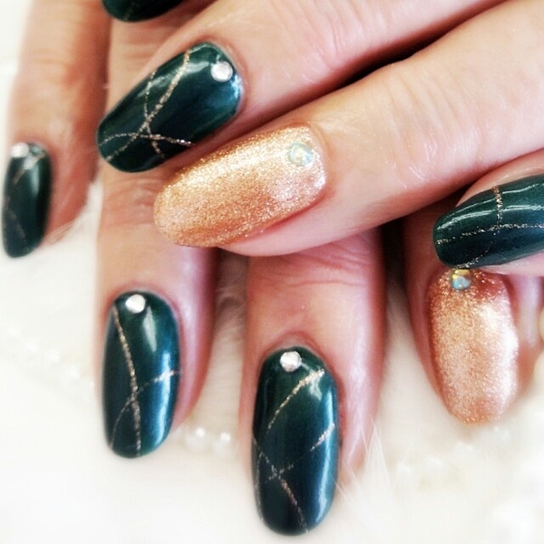 ゴールドラメの1色塗りもアクセントになりますね!
