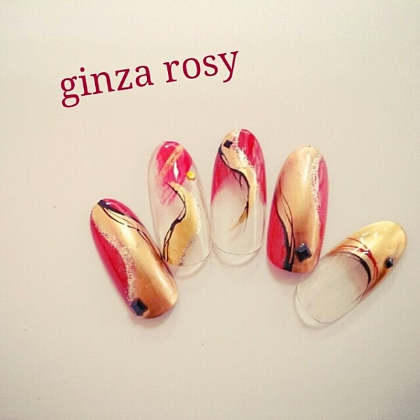 フレンチラインは、ラメではなく金箔にすると迫力があります♪