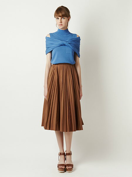 アコーディオンプリーツの端正なシルエットでエレガントに仕上げたスカート。