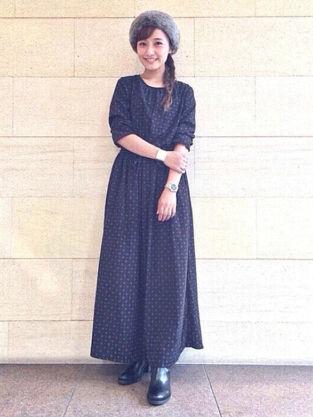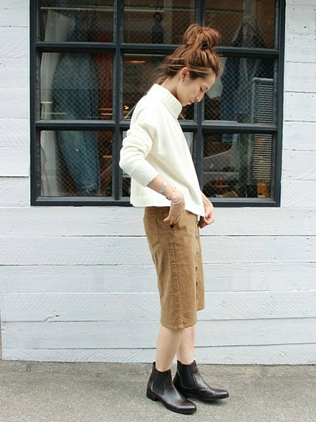 ブーツと合わせれば、ちょっぴりレディな印象に。