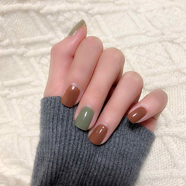 チョコレート&今年も人気のピスタチオカラーの大人なネイル。もちろんそれぞれワンカラーでも秋にピッタリのネイルに仕上がります。発色も良く乾きも早いので評判も◎
