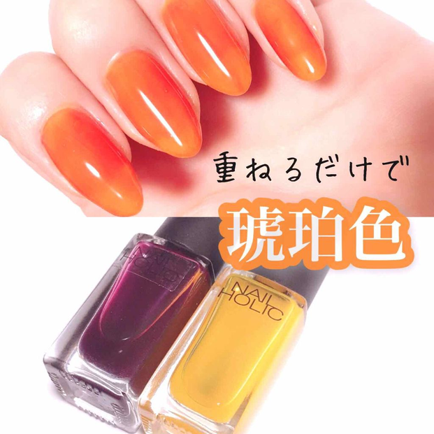 透け感のあるウルプルな2色はそれぞれが人気のカラーですが、2色を組み合わせることで更に秋らしい指先になれる「琥珀ネイル」がおすすめ。あえてムラを気にせずに重ねると、べっ甲のようになって可愛い♡