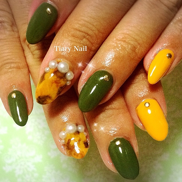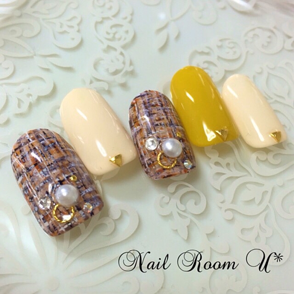 秋ネイルでおすすめのカラーはマスタードイエロー。普通の黄色よりも落ち着いていて大人っぽく、おしゃれにみせてくれるんです。そんなマスタードイエローに合わせたいブルー・グリーン・ベージュをカラー別に紹介します。