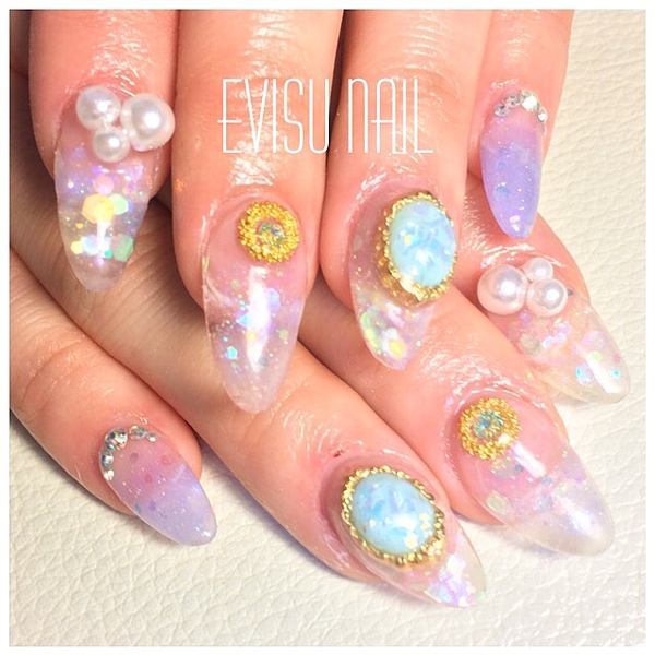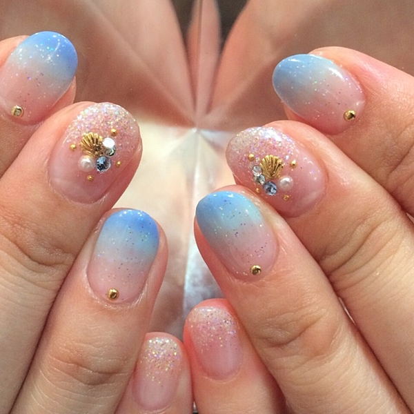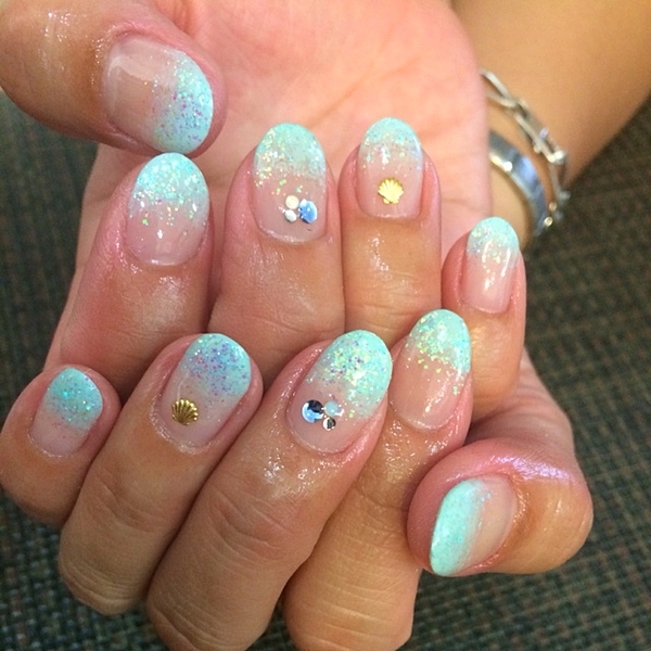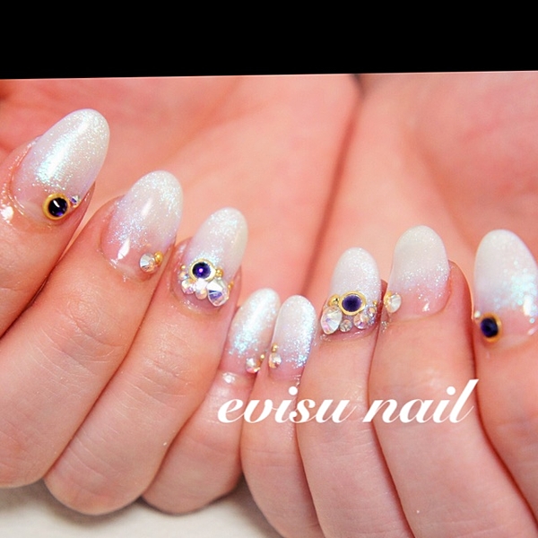 ジェルネイルのデザインに迷ったときはラメグラデーションできまり♡ストーンやホログラムを眩いばかりに散りばめたデザインには思わず見とれてしまいそう・・。ジェルネイルならではのぷっくり感と、ラメグラデーションならではのキラキラ感を楽しんで!