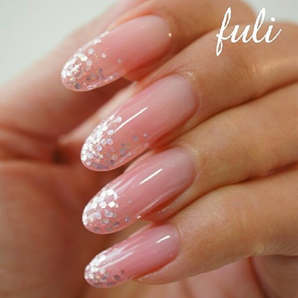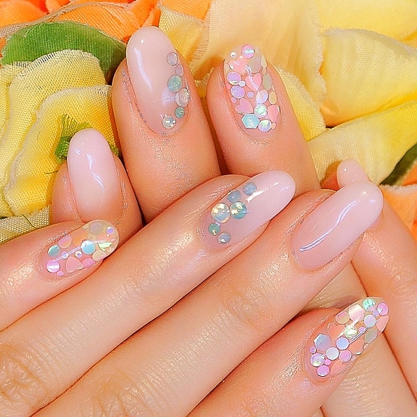 微細な粒子のラメグラデが女性らしい華やかで優しい雰囲気の手元に。