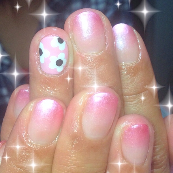 マニュキアたくさん持ってるけれどお仕事上ピンク系のみでストーンとかラメも付けれないし、すぐとれちゃうので普段は爪すっぴんですが。初グラデーションとか挑戦しましたo(`ω´ )o http://t.co/6p7MBDKkNw