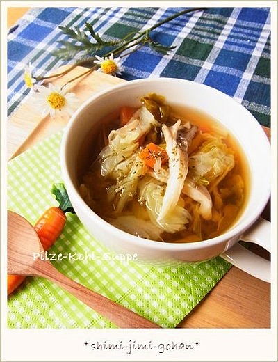 □ 舞茸とキャベツの香味野菜スープ