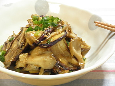 □ 焼きナスと舞茸のわさびポン酢仕立て
