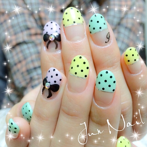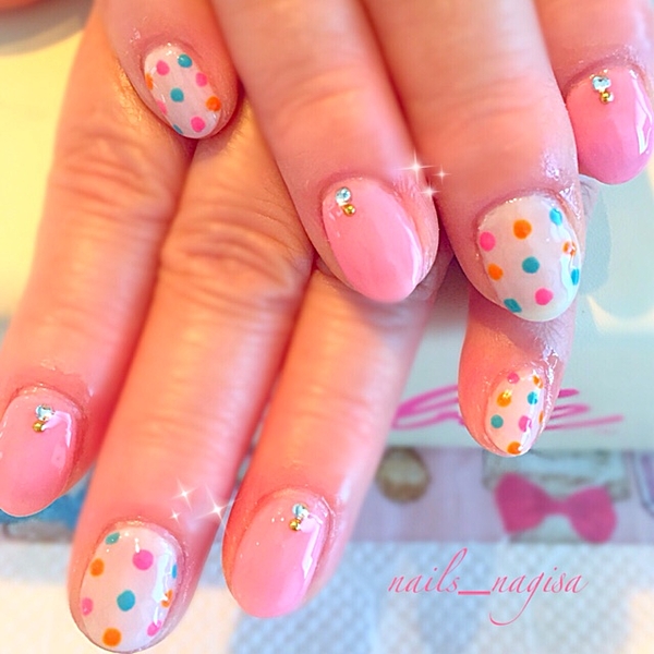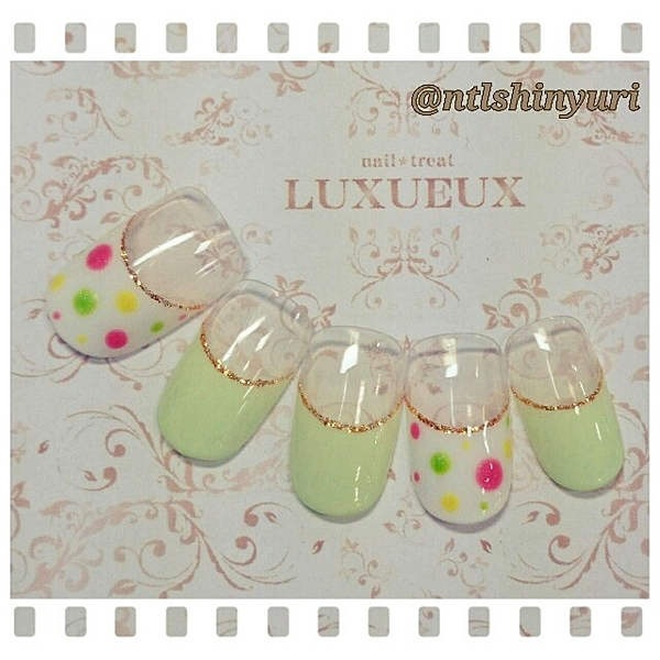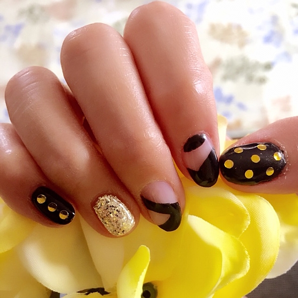 ドットをさりげなくゴールドラメで囲っているのもグッド♪