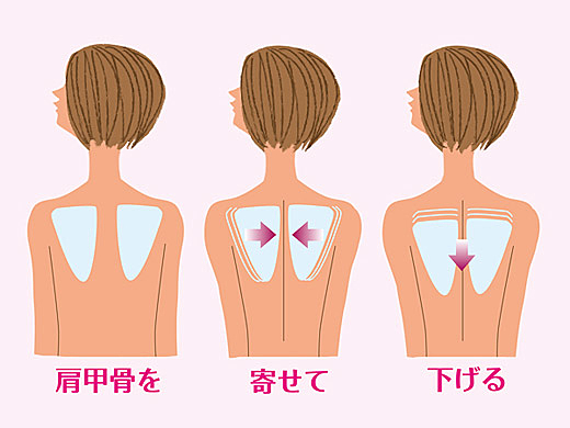■肩甲骨を寄せて正しい姿勢に