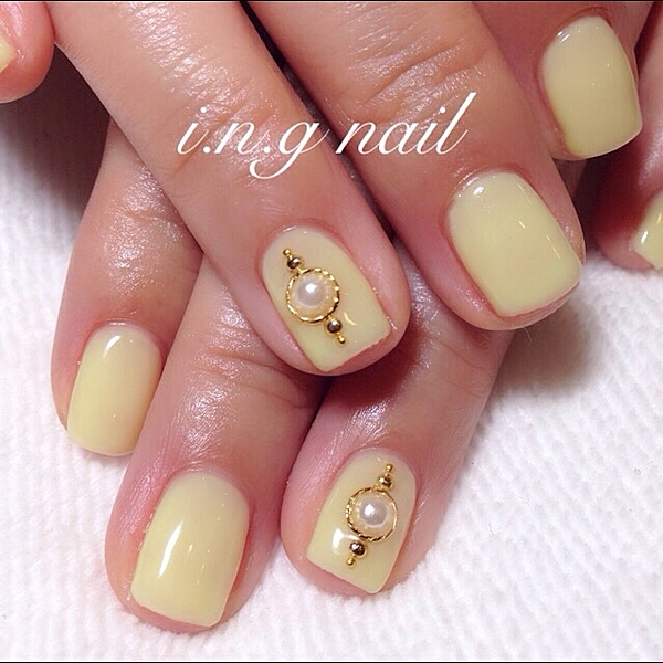 シンプルなワンカラーネイルで物足りない人は、ここにアイテムをプラスしていきます。