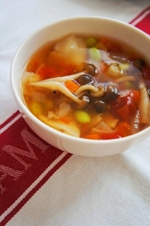 朝からビタミンたっぷり、枝豆のミネストローネスープ