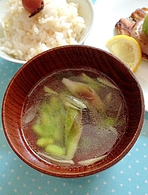 みょうがと枝豆の中華風スープ♪