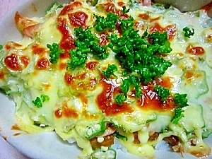 楽天レシピ:「リメイク料理☆オクラ焼きカレー 」より