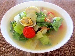 ちんげん菜とアサリとプチトマトのカレースープ