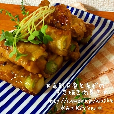 ■高野豆腐とネギのすき焼き風肉巻き