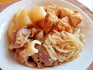■豚肉と大根と厚揚げと糸こんにゃくの煮物♪
