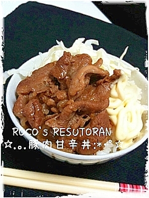 楽天レシピ:「マヨネーズでこってり☆簡単美味しい豚肉甘辛丼 」より