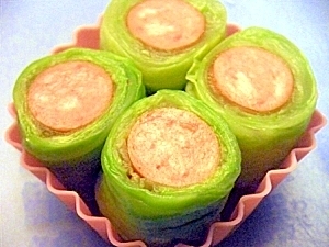 ウインナーにキャベツをくるくる・・
