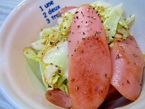 ■魚肉ソーセージとキャベツのオイスターソース炒め