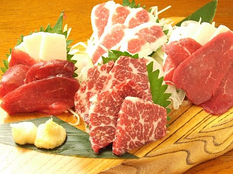 一家では本来の馬刺しの味を熊本のように気軽に美味しく食べて欲しい!!と、言う想いからこの盛り合わせをこの価格で提供していきます。
