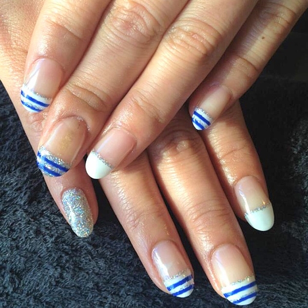 シンプルな白フレンチにシルバーのラメラインで上品に・・