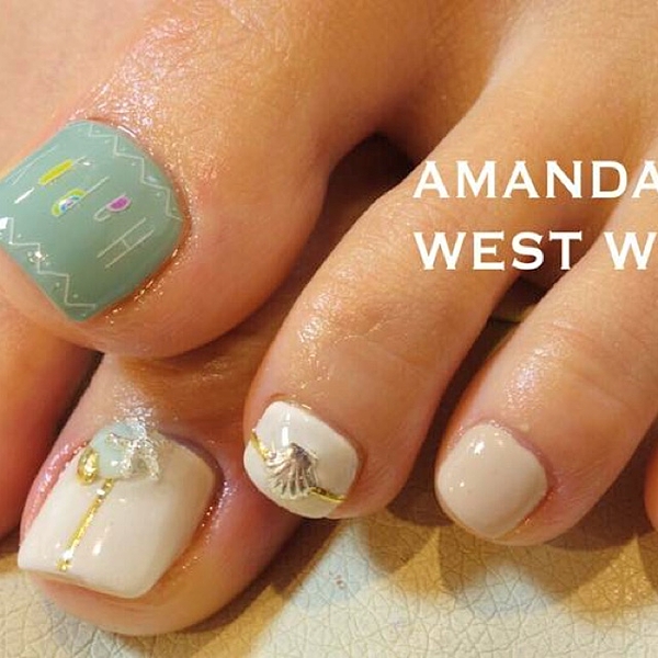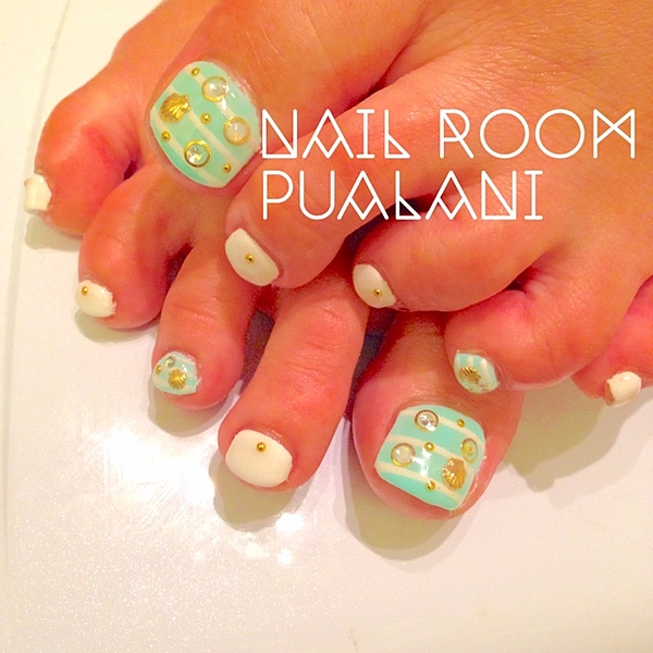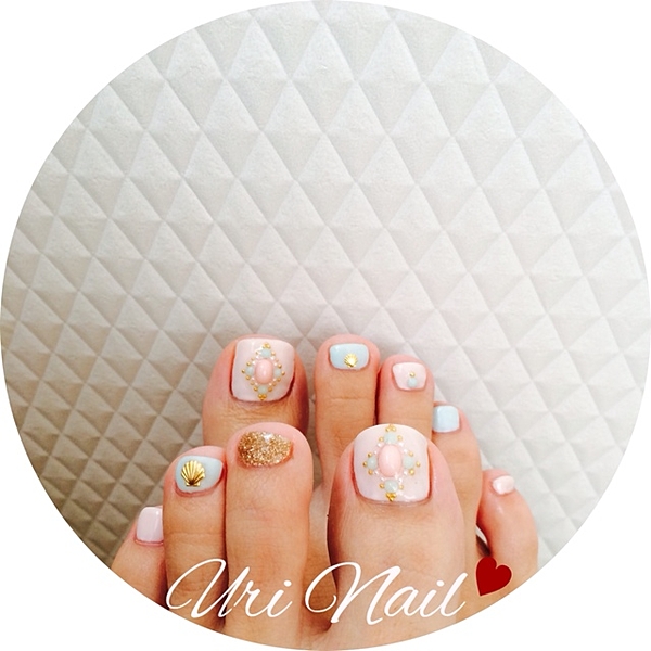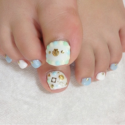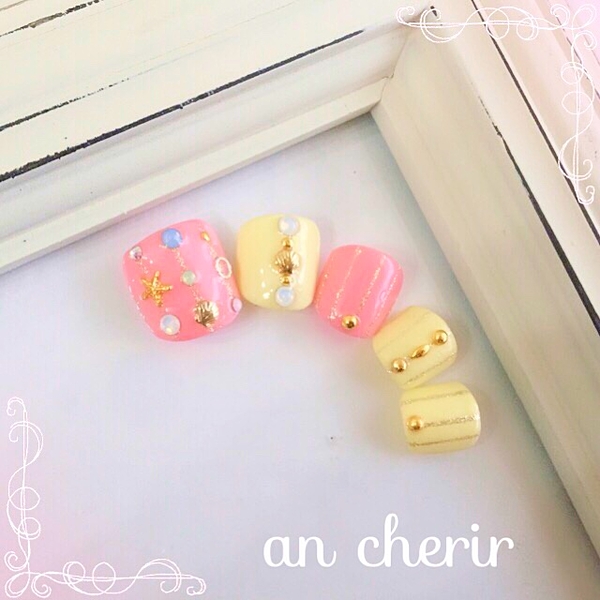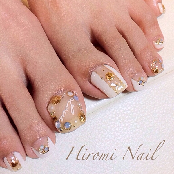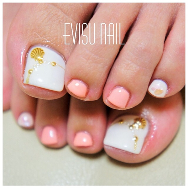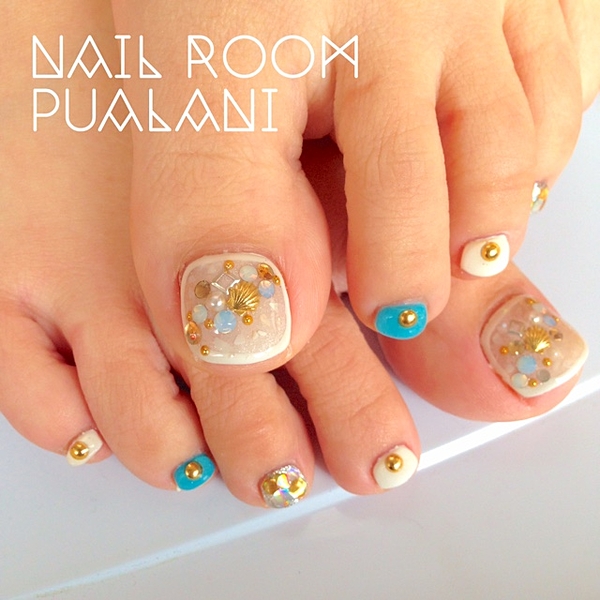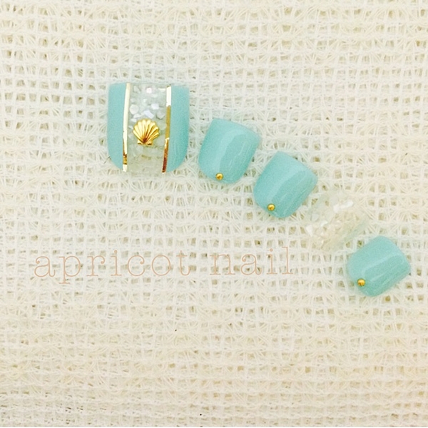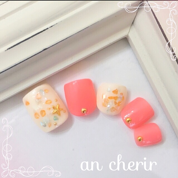 足元から夏、満開。シェル×フットネイルのカラー別デザイン集*