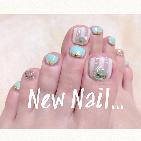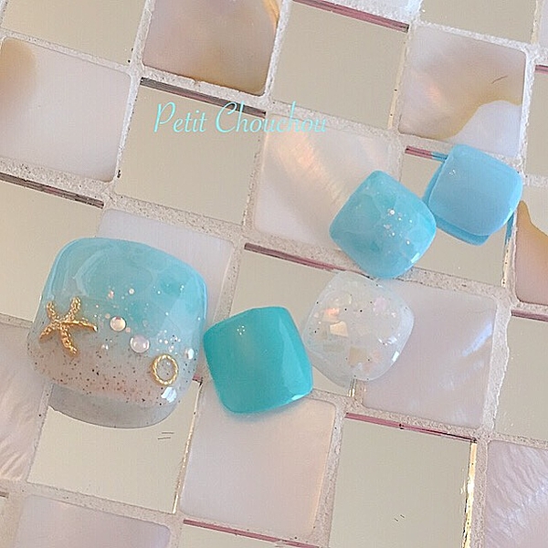 シェルデザイン×フットネイルのネイルデザインを集めました。夏らしさ満開のフットネイルを楽しみましょ♡ブルー、クリア、ピンクなどカラー別におすすめのフットネイル×シェルネイルデザインを紹介します♭