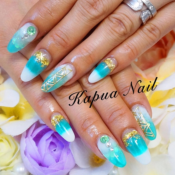 ホワイトとブルーでまとめた華やかな夏ネイル