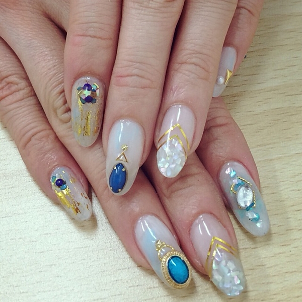 *長崎店* こんばんは*\(^o^)/* お客様ネイルのご紹介です! スカルプで長さを出してジェルやストーンでアートをしています♪ 華やかです〜♡ ¥13,932で浦川、寺田が担当いたしました! #ネイル #長崎 http://t.co/dzkQW3c4M1
