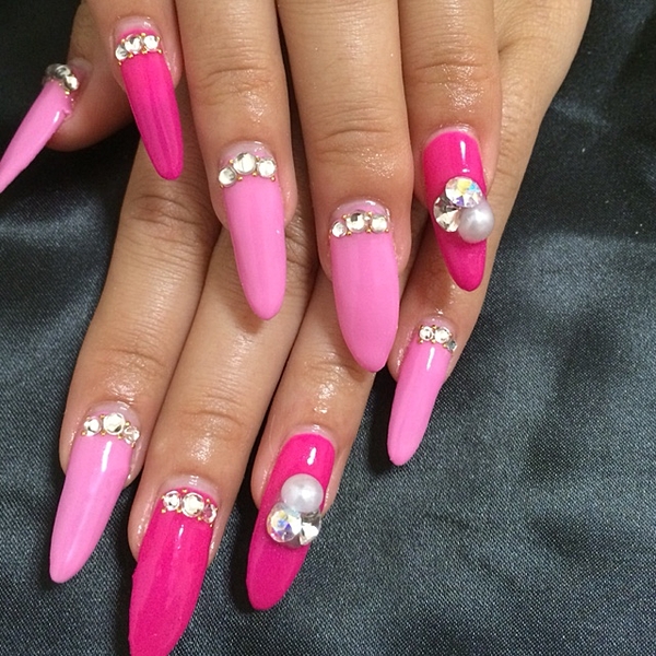 鮮やかなピンクが目を引くマリンネイル