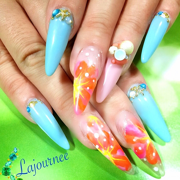 スカルプネイルだと海で遊んでも折れにくかったりするから、夏はスカルプにしたい!という人もいますよね?スカルプネイルだと長さを出せるから、夏ネイルのデザインもいっぱいのせたりしてゴージャスに出来ます♪夏におすすめのスカルプデザインを集めてみました♪