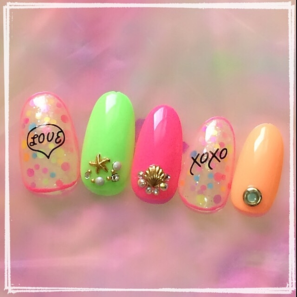誰にも真似できない!オリジナルのネオンカラーネイル♡