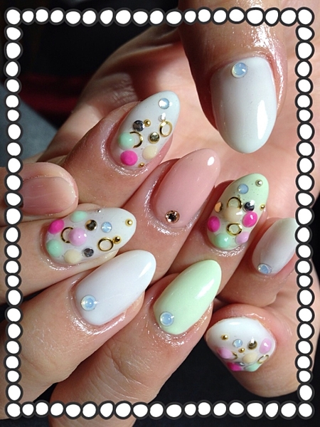 マットストーンを乗せるだけでシンプルだけどとても可愛いネイルが仕上がっちゃいます。